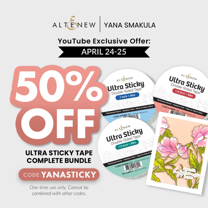 Altenew is offering 50% off the Ultra Sticky Tape Complete Bundle.