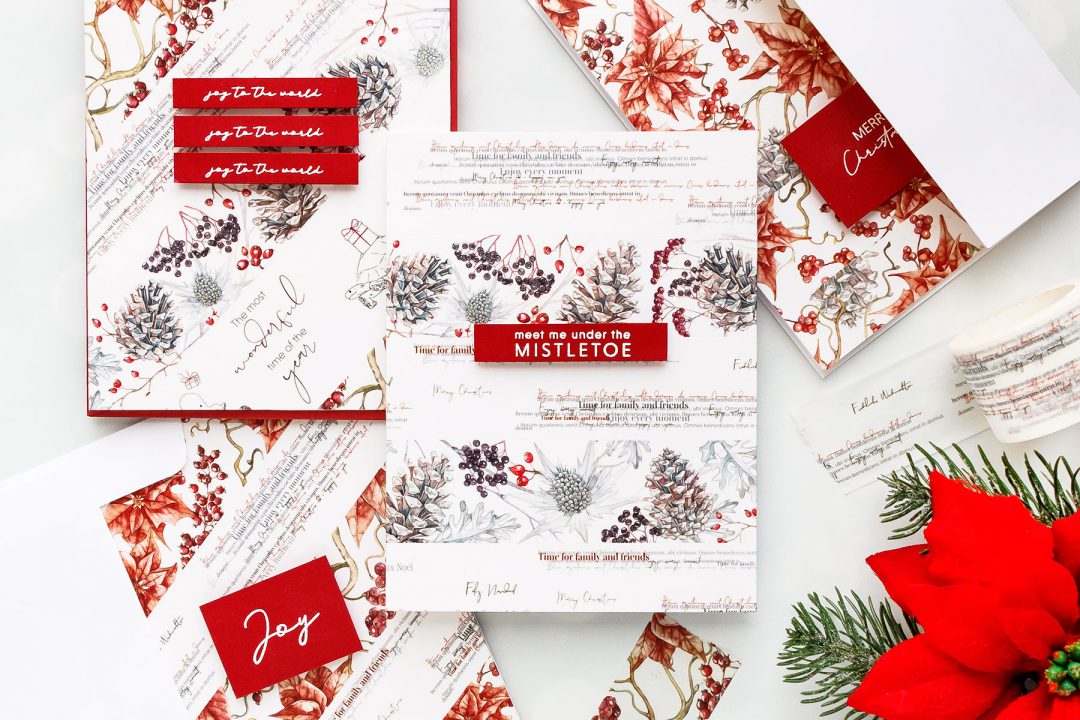 Today I have a bunch of simple Christmas Card ideas to share using Washi Tapes to create backgrounds for my cards. I used 3 different washi tape designs for my cards – Red Winter Rose, Christmas Typo, Berry x-mas. I mixed and matched them to create my own unique backgrounds for my cards. These blended seamlessly with each other and gave me beautiful and easy to make faux patterned papers for my cards.