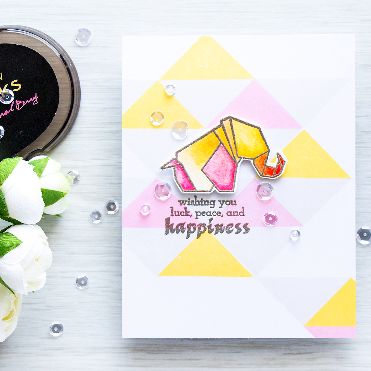 What a lovely card and the background really adds to the unique shape of the elephant!! I love origami even though I have never tried to do it. I do have some special paper to use but it is hard for me to read direction and teach myself, I guess I’m more of a visual learner! I love all of your work!