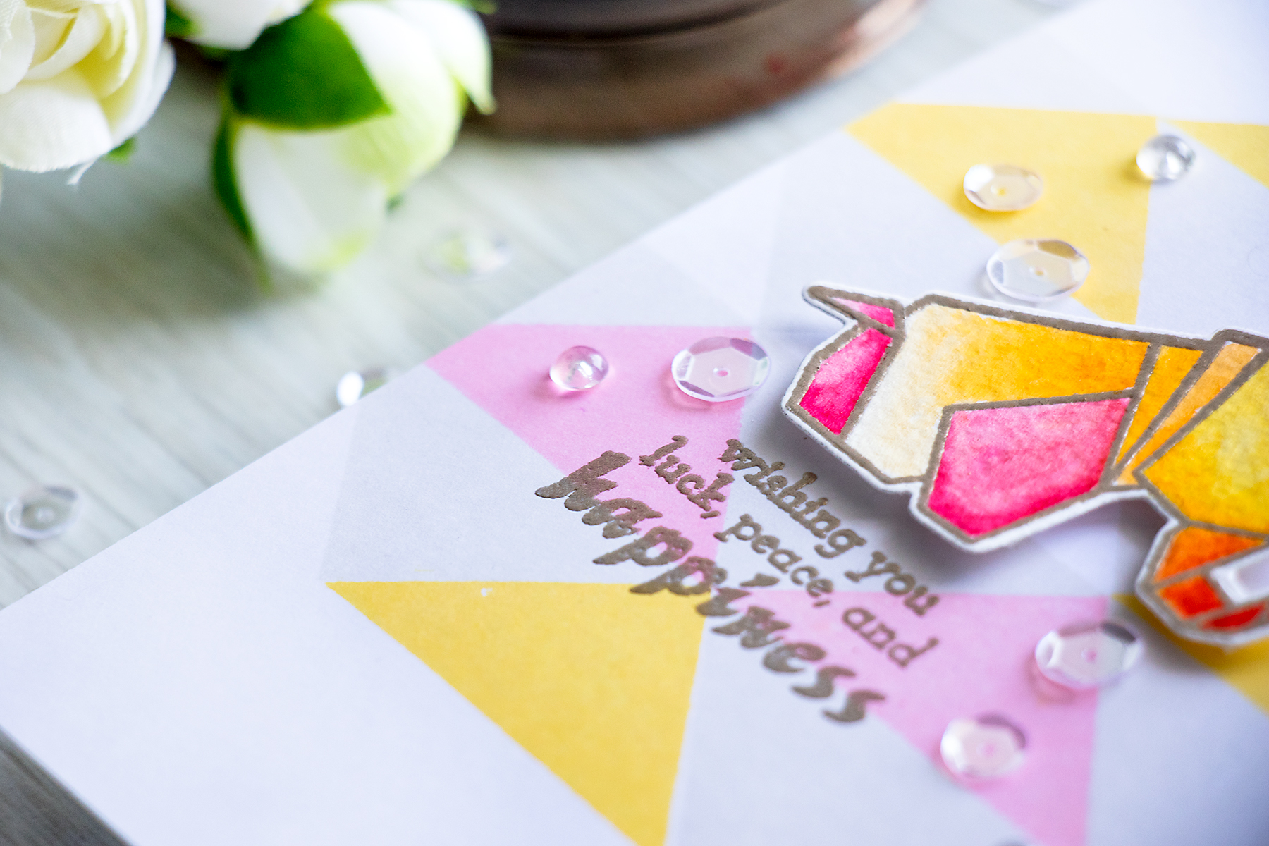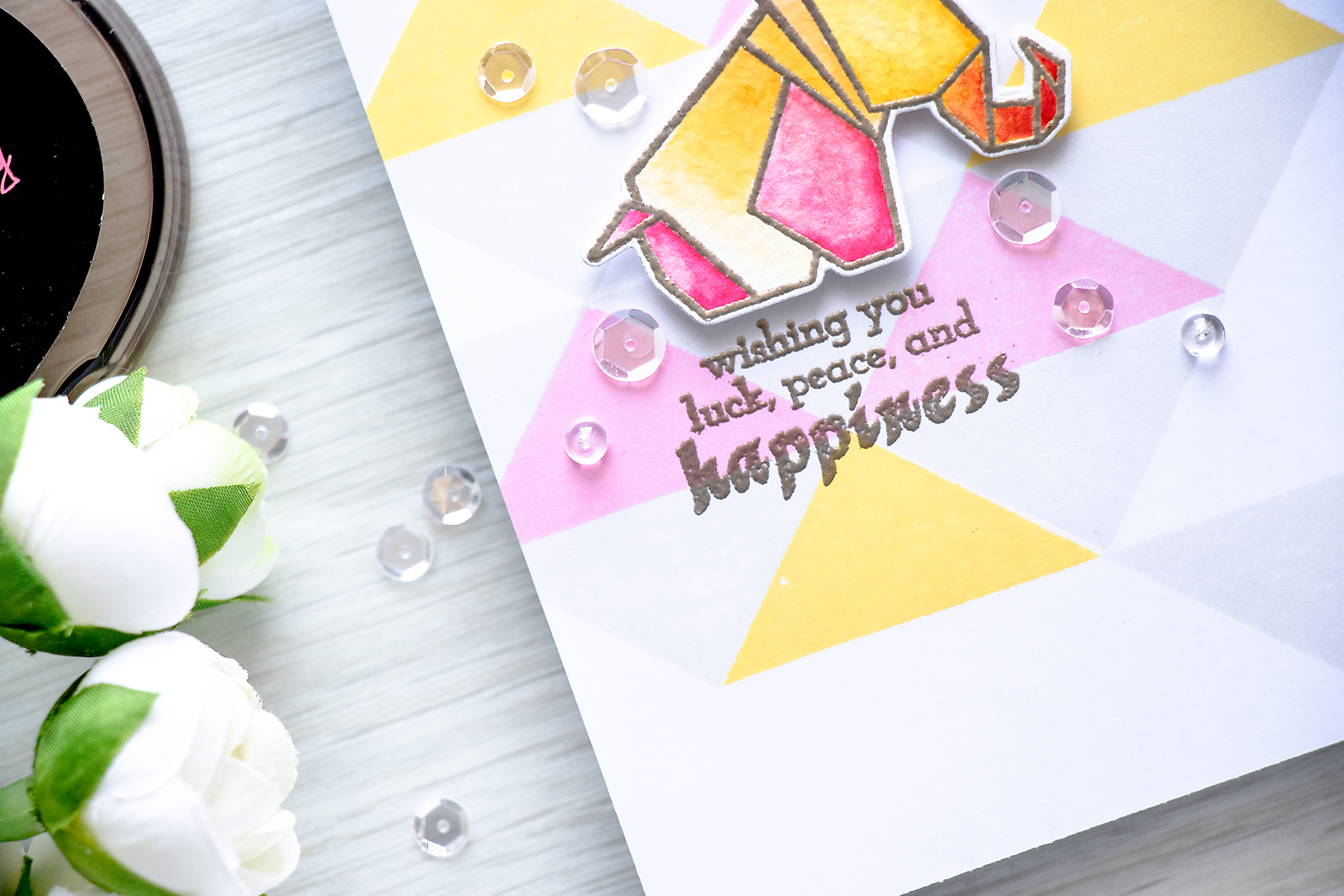 Hello friends! I used to love to make all sorts of origami shapes when I was a little girl, my mom would teach me how to make frogs and all kinds of sail boats and other shapes, too bad I have forgotten how to make most of them. So to me, the Ori Kami stamp set from Altenew feels a bit special. I have a card using this set along with my all-time favorite Simple Shapes to share today.