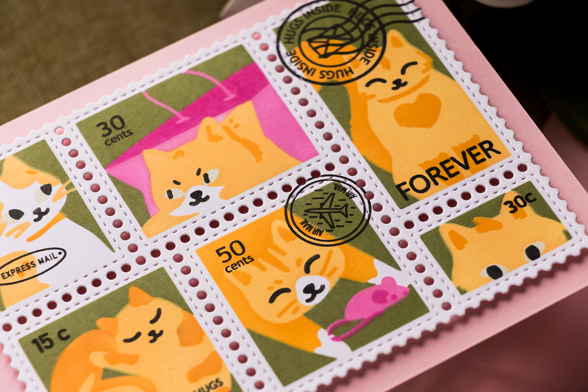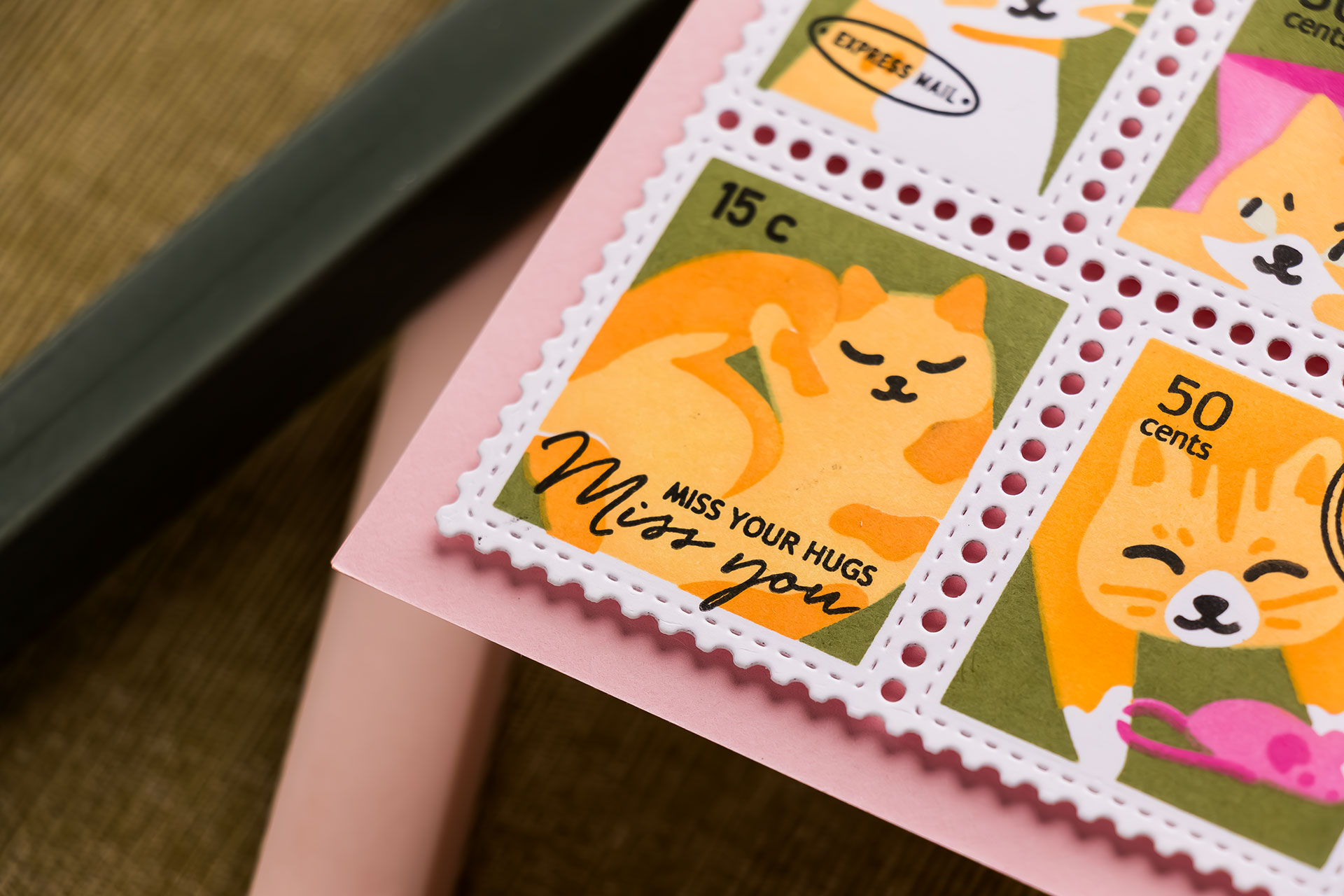 Card 1: Postage Collage Meow (A Little Tribute to My Cats)