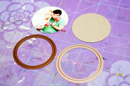 At first I only wanted to use the largest bezel from the set, but as I was working on my project I decided to incorporate all of them into my ornament. I printed my photo and cut it out using a circle die, I also cut a slightly larger circle out of kraft cardstock to back the photo up.