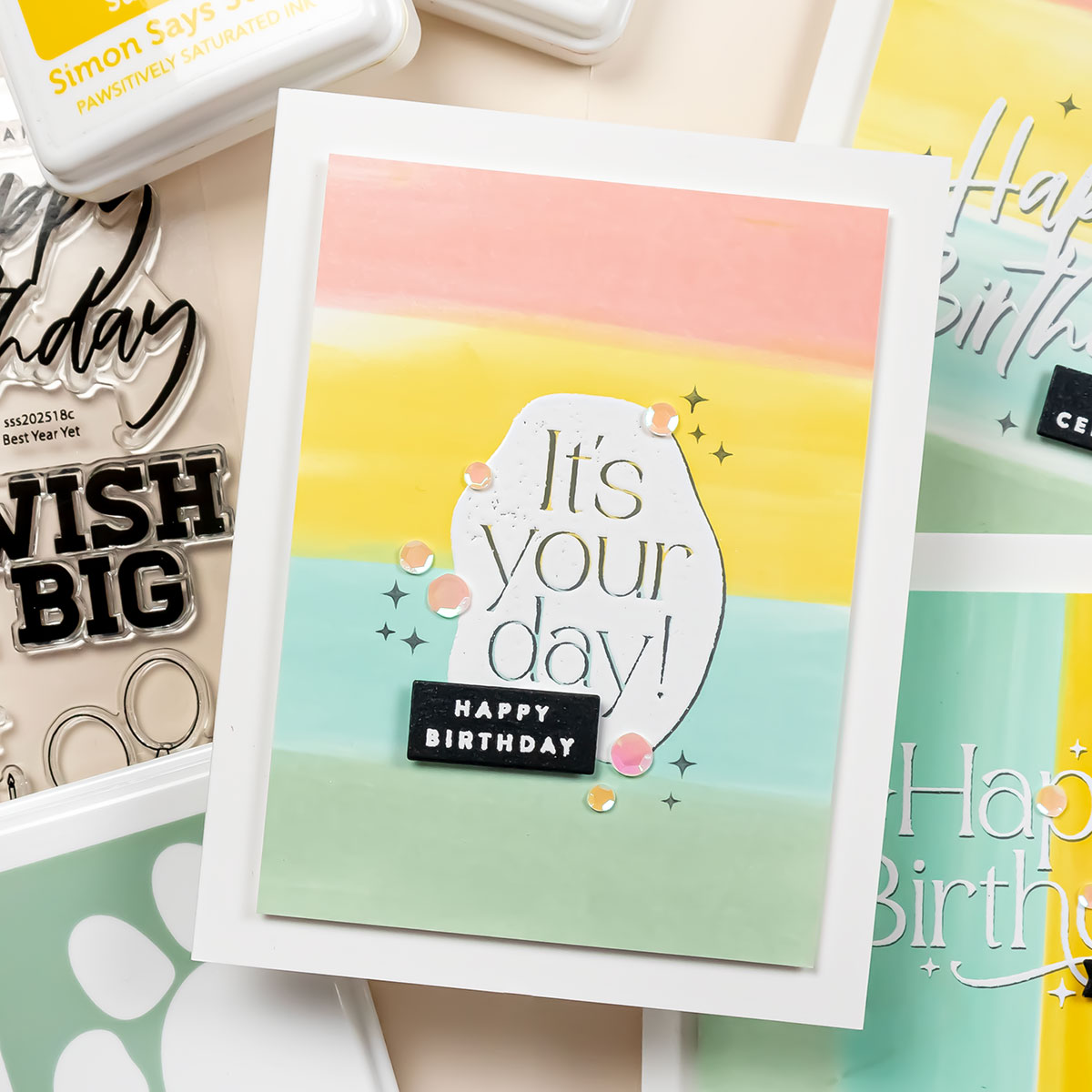 Hello, crafters. Welcome back for another Yippee For Yana video! In this video, I’m making colorful abstract background Birthday cards with Simon’s Pawsitively Saturated Inks and Best Year Yet stamp set.