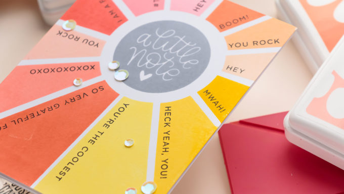 I also added additional sentiments to this card using the Simple Sentiments 02 set from CZ. I stamped a different one onto each of the colorful sections.
