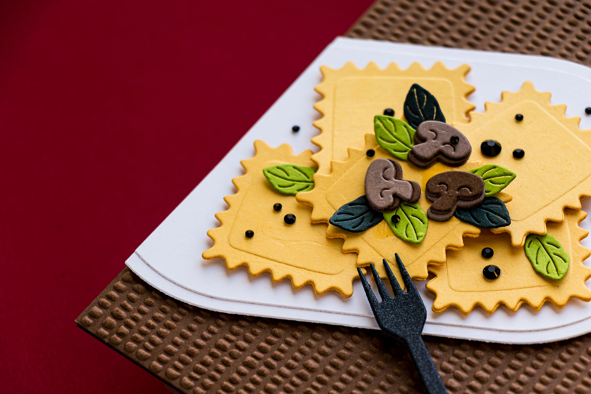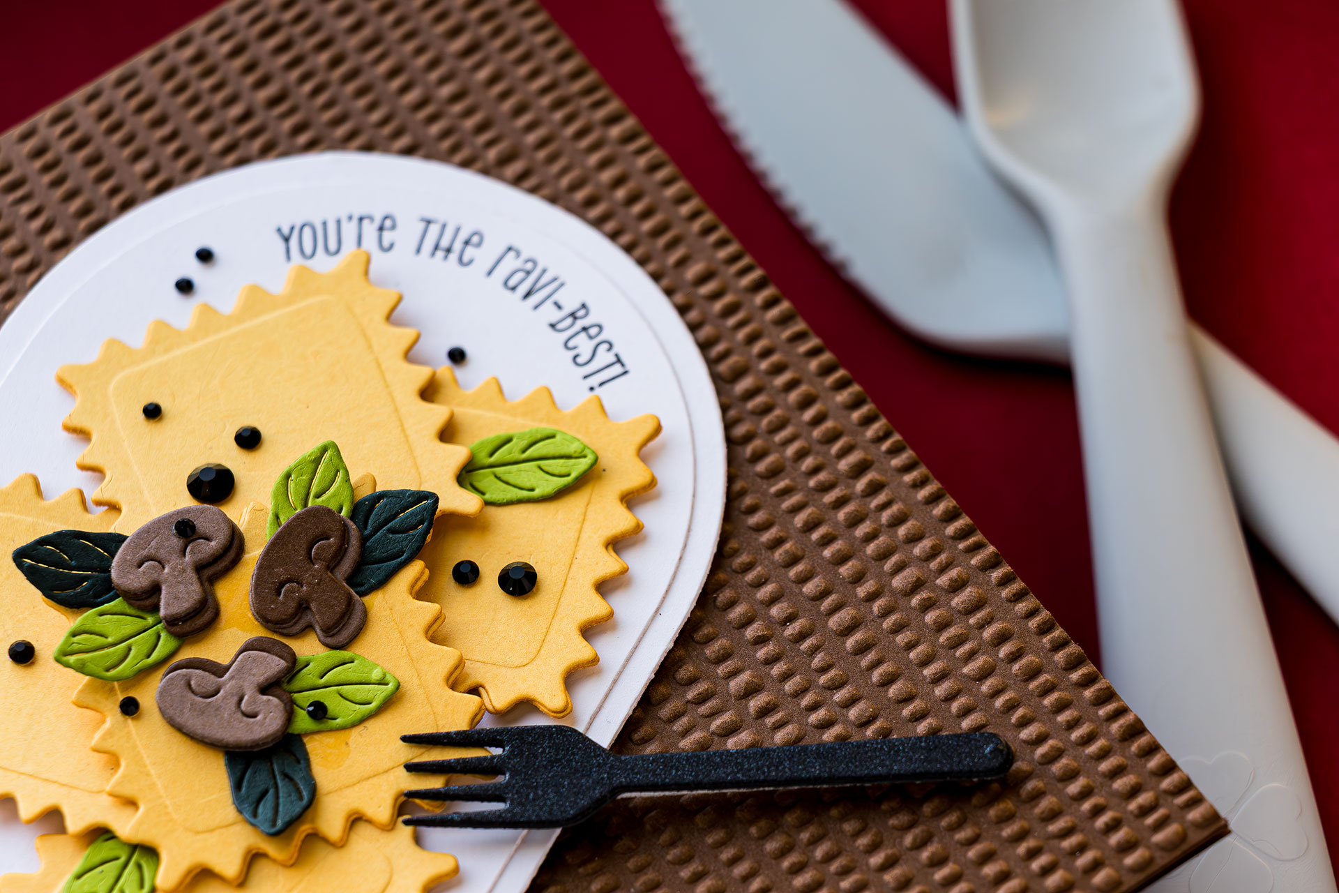Plate Designs: Die-cut simple circles/ovals to fake a plate, then tuck meatballs into spaghetti (make a tiny slit and slide them in).