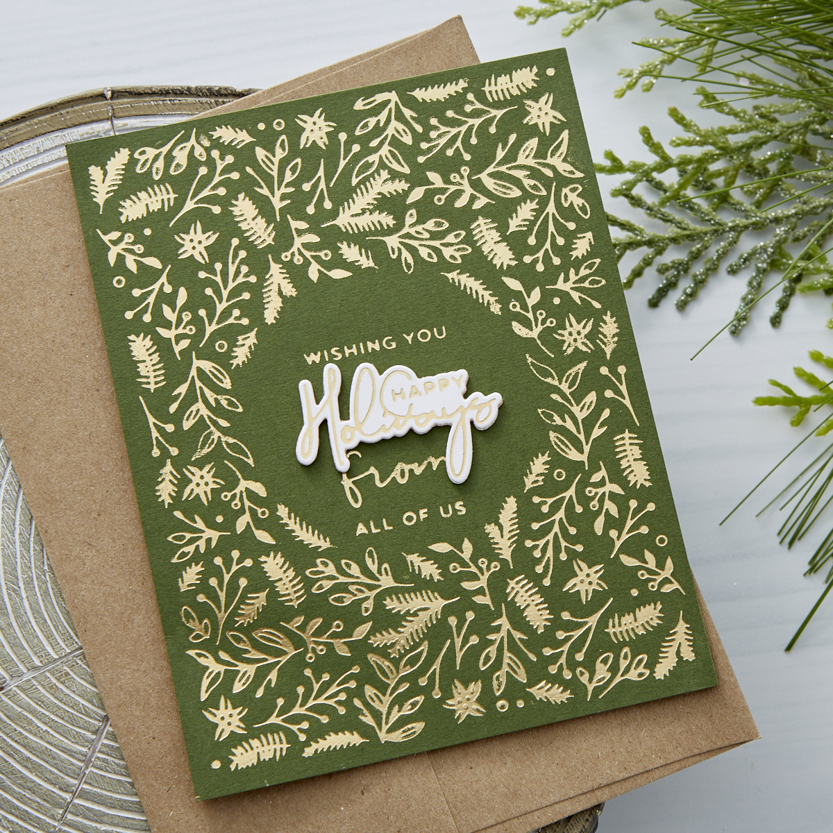 Christmas is one of my favorite holidays and Christmas cards by far are my favorite to make. So I couldn’t resist the opportunity to design several Christmas glimmer plates to create elegant foiled Christmas cards.